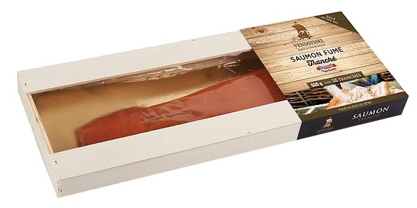 SAUMON FUME TRANCHE 600g CAISSE BOIS Vendsyssel